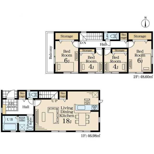 | 間取り(内訳) | 4LDK(洋6/6/4/4LDK18) | 建物面積 | 95.58㎡ |